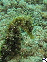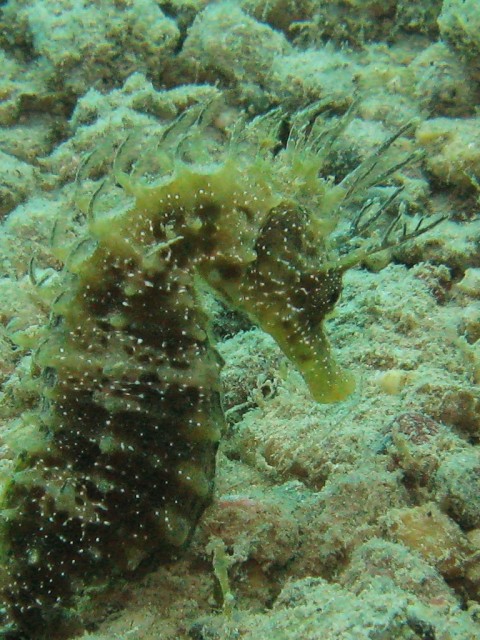 Vasárnap reggel ismét Spotornóba indultam, aztán még az országútról láttam hogy tök üres a strand és vannak vagy két méteres hullámok, gondoltam egyedül abba nem merek belemenni, inkább átnézek egy öböllel odébb. Noliban a part is másfelé néz, meg talán a sziklák is fognak velemit a hullámzáson. Amikor odaértem, kiderült hogy más is így gondolhatja, volt ott vagy 80 búvár, iskolák, csoportok, és a bázis sem csak afféle palackkölcsönző bungi, hanem komoly 5 csillagos PADI instruktorképző :))) Ennek persze megvolt a hátránya is, nem hagytak akkor és arra menni ahogy én szeretném, azt mondták tízkor megy be egy oktató csajszi 2 PADI mélymerülő tanulóval, menjek velük. 11 után picivel be is mentünk :). A két "mélymerülő" már a bemenetelkor is problémázott - itt is volt azért hullámzás, nagyjából bokámtól mellemig változott a part szélén a vízszint- alig bírták az uszonyaikat felvenni. Én tudtam hogy lesz áramlás is mert előtte úsztam egyet és érdekes aszimmetriát mutatott a part mentén balra ill. jobbra mutatott sebességem, de gondoltam ők jobban értenek hozzá. Az oktató csajszi viszont kisebbre számíthatott, mert lemerülés után egyből szembe kezdtünk az áramlással. Jellegtelen, kissé a kora tavaszi hegyeshalomra emlékeztető (amikor még mindent iszap borít, sehol egy zöld) jellegű lejtő fölött úsztunk le 30pár méterig, a csókák nem nagyon bírták az áramlattal szemben, a maca is nagyon kepesztett a hasított uszonyával (elég csoffadt maca volt, szeritem uszonyozásban b.nejem keresztbe lenyelné), egy darabig még próbálkoztunk, nekem nem volt különösebb bajom (persze azon kívül hogy egy kopár lejtő fölött erőlködök 3x méteren) de a két tanfolyamos nem tudott az áramlattal szemben menni, 20 perc után feladták. Úgy jöttünk ki hogy 150 bar -om maradt és nem láttam semmit. Bakker. Azt hiszem Ricardo, a bázisvezér is láthatott valamit a fejemen, mert amikor felvetettem hogy nem lehetne-e a parton elsétálni az áramlattal szemben, beúszni és végigdriftelni a part mentén, akkor azonnal beleegyezett és a maca mellett még egy helyi DM -et elküldött velünk, akinek ráadásul varázsuszonya volt (tök propeller formájú). Na ez már jobban sikerült, ahogy a 20 m -t elértük rögtön "sanpietro" halak közé kerültünk, aztán jött polip, halrajok, barrakuda (ezt megint nem sikerült elcsípnem, a látótáv olyan 5-10 m. körül mozgott, a hullámok letolták a lejtőn a parti szmötyit) Találtam egy csigapetegömböcöt (nem tudom hogy a sok csiga rajta az éppen rakja a petét vagy eszi), csikóhalat meg európai repülőhalat is (ezt sem sikerült elkapni, hamar elszaladt). A merülés vége felé egyszer ahogy ránéztem a csajra az futott át az agyamon hogy jé, még nem is láttam ezt a technikát hogy valaki az oktopuszára lógassa a dekóbóját... aztán pár másodperccel később rájöttem hogy nem direkt van, csak fellövéskor beleakadt neki a madzag és húzta fölfelé :). Abból is látszik hogy nem vagyok rutinos fotós, hogy inkább segítettem neki kibogozni, nem fényképeztem le :). Becsületére legyen mondva, mire odaértem már kitolta a mellényéből a levegőt, hanyattfordult és maga is elkezdte kibogzani tehát nélkülem se lett volna baleset, de legalább macsóskodtam kicsit :) Na ez a második merülés egész megérte. A bázison a nap 18E -be fájt. | ||