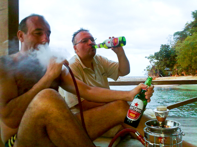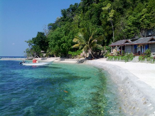 Helyzet az, hogy elég nagy ár-apály van arra felé és a partot a elvinné a fenébe házastól mindenestől. Szóval, amit lebetonozva látsz az a maximális dagály szint. Úgy sacc per kábé. Ja és a sziget is meredek mészköves szóval a kis resortocska házai félig természetesen barlangokba vannak.