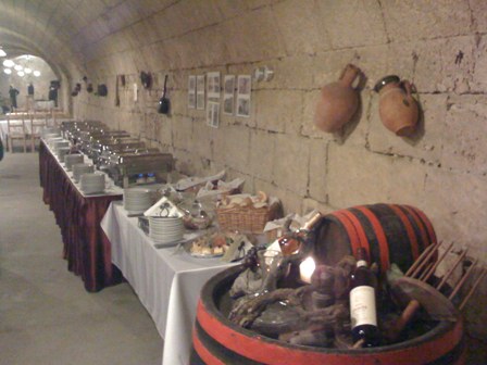 a komáromi erődben láttam utoljára ilyen hosszú pincefolyosót, bár ott nem volt ennyire világos és nem volt ennyi asztal.