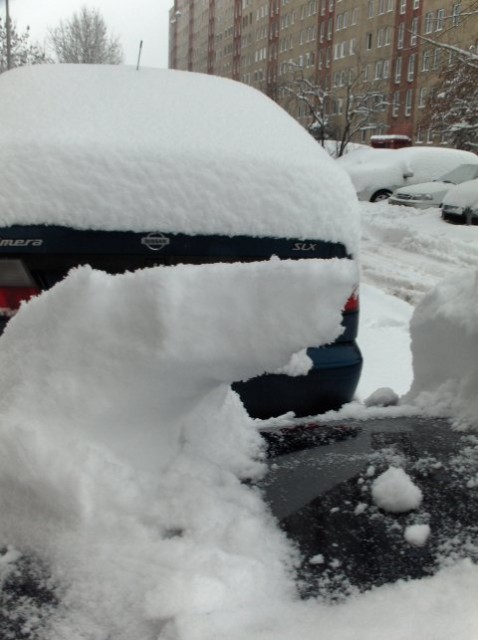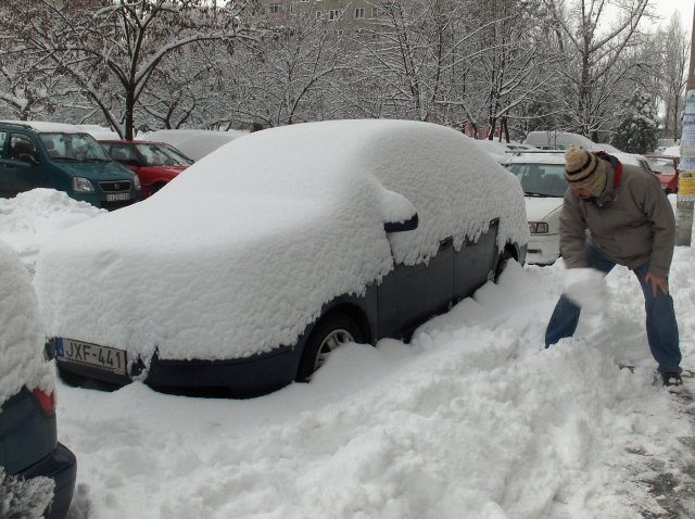 Hát én reggel elkövettem azt a hibát,hogy egy kisebb fajta hókupacba parkoltam le (munkahelyem előtt) az autóval....hát igen nehézkesen tudtam csak kihintázni most ,hogy jöttem volna haza!Már azon tanakodtam,hány jóvágású fiatal ember fog kitolni...de végül sikerült :-))
