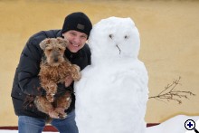 Nekünk utakat kellet csinálni a kertben szegény Málna kuytának, mert a 38 centis marmagasságával nem tudott volna csak a ház körüli 50cm-es szegélyen mászkálni a nagy hó miatt, de mivel betonra nem szeret csinálni ezért valahogy ezt meg kellett oldani. Két utat is csináltam neki a sövényekhez, hogy oda be tudjon menni, ott kicsi a hó, mert a növények felfogták és imád a sövény mögött motoszkálni. Ja és kapott egy hóembert is reggel! | ||