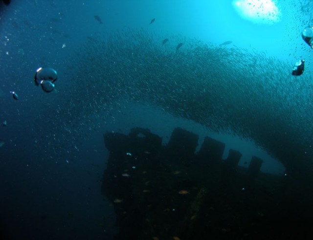 Garfield többször járt ott, több időszakban is... mi szeptemberben láttunk molamolát, hatalmas bumphead parrotfish rajt, cápákat és mantákat (bár ez utóbbiakra azt mondták, hogy nagy szerencsénk volt). egyéb halrajokkal a tulambeni USS Liberty roncsánál találkoztunk még.