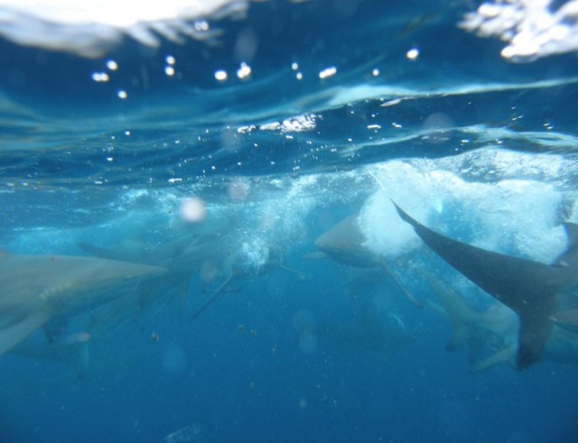 jó esetben 8m látó, áramlás(nem erős), hullámzás, 40-50 cápa, 1-2 őrült aki 20 merüléssel jött oda, katonás szigor(második intésnél mész ki a vízből, persze nem egyedül), stb