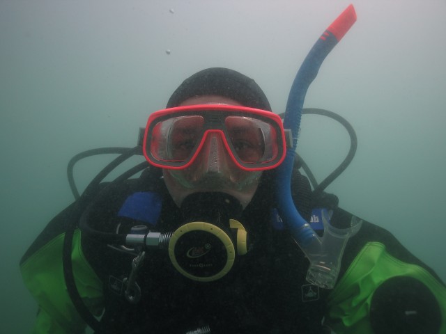 Jaja, a második merülésre nem meglepő módon a saját maszkjába ment be :)