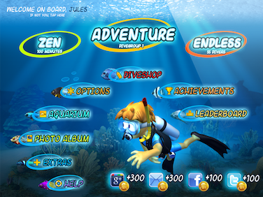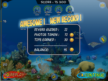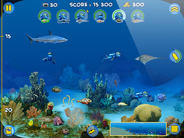 A programozó nagyon ügyes, lekezelni 8 búvárt, 48 halat és 31 000 pixel széles hátteret az iPad 100 megás memóriájában nem kis teljesítmény...