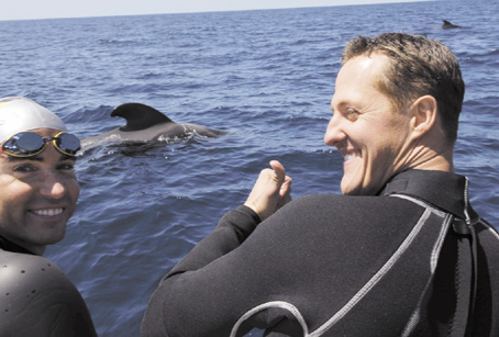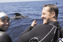 Schumacher még tavaly, megfelelő hírverés után, kísérletet tett egy cápákkal történő akváriumi merülésre. Uszonyos merülőtársai a homoki tigriscápák(Carcharias taurus ) lettek volna. A derék Forma-1-es pilótának azonban a lemerülés előtt, a medence szélén, inába szállt a bátorsága. A félelmetes kinézetű, de békés ter- mészetű homoki tigrisek helyett a szelídnek vélt, de az említett cápafajnál potenciálisan sokkal veszélyesebb gömböjűfejű delfinekkel ( Gobicephalea melas ) viszont gond nélkül sznorkelezett.Nyilván nem tájékoztatták arról, hogy ha az időnként 50 - 100 egyedből álló kongregációban fiatal, vagy újszülött delfinek is találhatók,a csoport domináns egyede ( az ún. alfa hím ), illetve az a kisebb csoport, amelyhez a borjú tartozik, nagyon agresszívvé és kiszámíthatatlanná válhat.Tavaly Fokföld atlanti vizein, a partoktól 60-70 kilométer távolságra, kék és makócápákat figyeltünk meg. A belógatott csali iránt komoly érdeklődést tanusító kékcápa hirtelen nyugtalanná vált, majd sebesen elmenekült. Csak percekkel később vettük észre az 50 - 60 egyedből álló gömbölyűfejű delfin csapatot, amely elől a kékcápa elmenekült. Chris Fallows, a híres cápakutató és természetfotós elmondta, hogy nem tanácsos vízben maradni, ha a delfincsapat megközelíti a hajót. Három éve történt, hogy egy elismert dél-afrikai vízalatti természetfotós és merülőtársa felvételeket akart készíteni a delfinekről. Amint megközelítették a csapatot, a vezérhím kivált a csoportból, és rájuk támadt. A kardszárnyú delfinnél ( Orcinus orca ) nem sokkal kisebb gömöbölyűfejű delfin az előzőhöz hasonlóan a fogascetek rendjébe tartozó ragadozó. A dél-afrikai búvárokra támadó gömbölyűfejű delfinek az operatőrt megölték, merülőtársa pedig , élete végéig megnyomorodva éppen hogy csak megmenekült. Miután a gömbölyűfejű delfinek elvonultak, háromnegyed óráig "keringőztünk" egy megtermett, közel három méteres röviduszonyú makóval ( Isurus oxyrinchus ), minden gond nélkül. Ha viszont felbukkannak a gömbölyűfejű delfinek, inkább a fedélzeten maradunk. Tipikusan laikus tévhit, hogy az összes cápa vérszomjas gyilkos, és az összes cet ( delfin, bálna ) aranyos kezesbárány. Mindig reálisan tájékozódjunk a potenciális kockázatokról, mielőtt nagytestű tenegeri állatokkal merülünk, és megközelítjük őket a víz alatt.Dr. Elter Tamás PADI Instruktor, MARINE LIFE Shark Projekt | ||