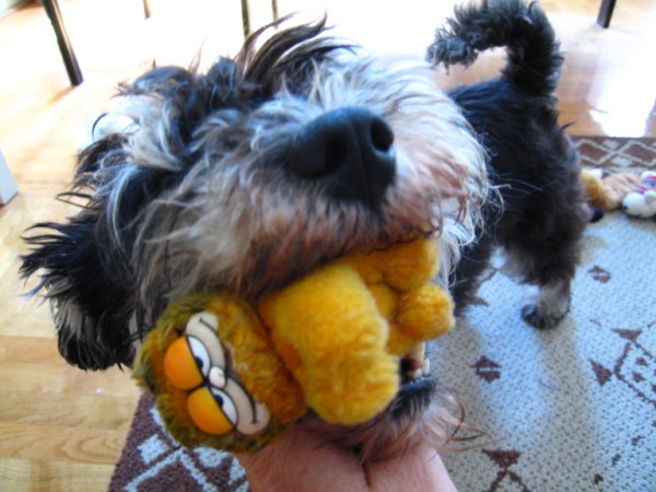 Nem tud válaszolni,hiszen ott van a kutya szájában. :)))