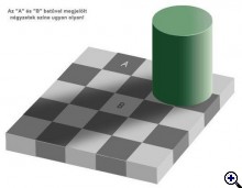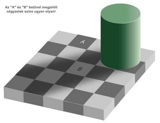 Nos a különbségnek több oka is lehet, egyrész a webböngésző jpg algoritmusa nyilván más, mint a képnézegetődé, photoshop-é. Ennél viszont sokkal lényegesebb a kép környezete, ha otthon fekete háttér van a kép körül, itt pedig egy világos szürke, akkor az nagyon-nagyon sokat számít a színekbe. Itt van erre egy kiváló kép, ami elsőre és másodikra sem hihető, pedig igaz. Ahogy a képen is írva van, az A és a B négyzet színe azonos, mégis a környezete miatt az A sötétszürke, a B pedig világos - pedig nem. Nos ilyen optikai csalás miatt lehetséges, hogy az otthon belőtt kép a dc-n nem azt hozza amit vársz. Tanács: ha dc-re töltesz fel képet, és fontos a pontos visszaadás, állítsd addig a hátteret világosszürkére. | ||