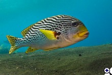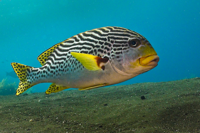 Most hogy látom ez a te képed, nem tudok semmi jót írni róla. Nem szép a kék háttér színe, gondolom valami zavaros vízben készült, a magányos hal így oldalról nagyon uncsi, elcsépelt igazi amatőr felvétel. A kis távoli halat letörölhetted volna a képről. Ezek a halak általában rajban bandáznak, tessék róluk olyan felvételt készíteni. Folytassam? :-) :-) :-)