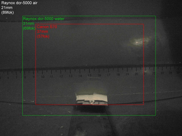 Ez ad némi képet arról, mit jelent a látószög. Felső képen az air amikor az előtét és a tok között nincs víz, így ott nem törik a fény, a water meg értelemszerűen amikor van. Garf obija annyival jobb, hogy neki vízzel sincs fénytörés. Az alsó kép meg azt mutatja mennyit dob az előtét a látószögön szárazon. És hogy mekkorát torzít. | ||