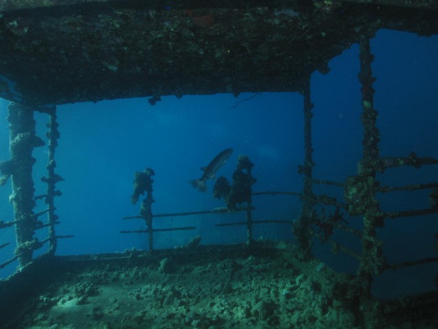 Na azért szégyellném, ha nem ismernék fel egy roncsot a jellegzetességei alapján, amit már merültem (főleh többször). Barrakudáról meg a pontosság kedvéért megjegyezem, nem ezt a nagyfatert kergettem, hanem egy kisebbet a felső folyosón es csak azért, mert kiváncsi voltam bírja-e a tempóját a hasított uszonyomnak :)