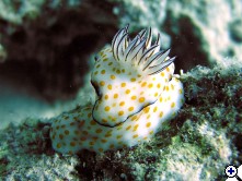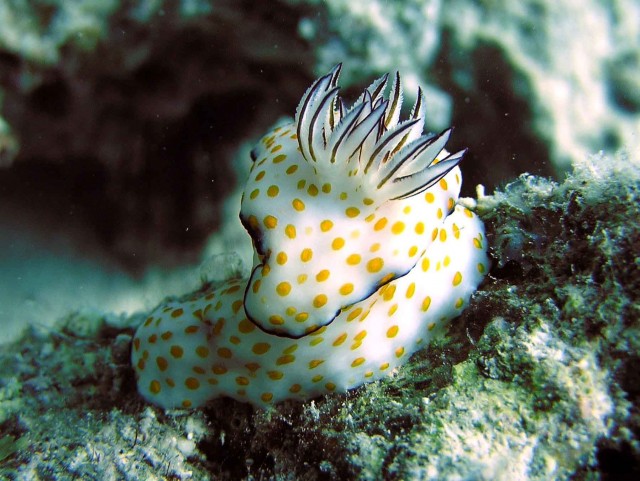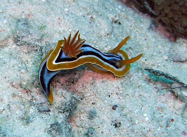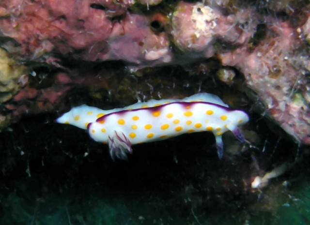 Tengeri nyúl (Aplysia depilans) csiga a lelkecském, szal bele lehet gyömöszölni.