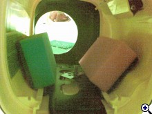 És nem árt tudni, hogy ezek a toko mélyebben jobban zárnak, mert a nyomás rászorítja a fedelet a házra. Ha a felszín közelében ereszt, esetleg a záró kallantyú is gyönge lehet (erre utal, hogy egy kis plusz nejlonnal már majdnem fogott) A mosogatószivacsért egy külön gratula! Ha bemegy a víz, egy darabig felszívja... | ||