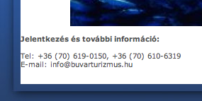 tud valaki valami infot a buvarturizmus.hu rol??? (bal oldali reklamok kozott...) mert igencsak keves info a weblapjukon, ahhoz hogy rajuk bizzak 1800eurot (vagy akar csak a felet...) vagy uljek autoba es menjek le Kakucsra vagy Dabasra esetleg PAGra a +infoert??? | ||