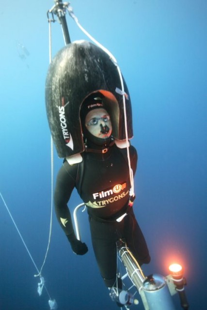 A gyakorló merüléseknél egy alkalommal majdnem beszakadt a dobhártyája (ez már előfordult vele néhányszor), és ezért kétséges is volt a merülés időpontja, de végül a médának meghírdetett időpontban merült (végül az orvosok is jóváhagyták, illetve rábízták a dömntést). | ||