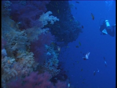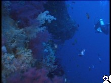 Anno, mikor még a fotósok - tehát az alacsonyrendűbbek - táborába tartoztam, az öreg Sealife gépem néha egész jól le tudott fagyni menet közben. Olyankor csak az elem kivétele segített újraindítani. Egyszer nagyon jó helyen voltunk, és lett volna mit fotózni, mikor is megdöglende. A zasszonnyal fel a felszínre, felfújt jacket meg pólós taposás mellett a fej felett tok kinyit, gép kivesz, asszonynak odaad, elem hihúz, majd vissza minden, és mi is vissza a víz alá. Ezt látták páran a hajóról - egész este azon faggattak, mi a francot csináltunk... | ||
