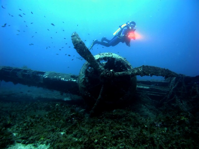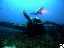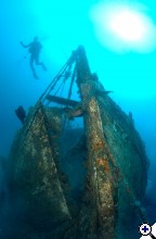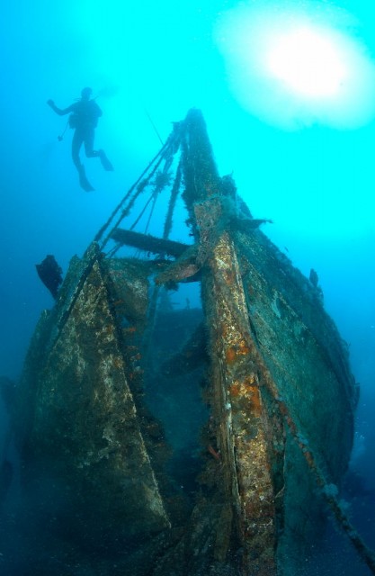 Na félretéve a viccet: Egy darab felvételt tudtam készíteni akkor, mert utána először a blendegyűrű tört el a gépvázamon,majd beázott a rabszolgavaku. Szóval, igen tudatos volt. Reggel mentünk amikor még tiszta a víz és meg volt minden tervezve. Így végülis egy kép is elég volt, de lehetett volna persze még javítani a dolgokon. Nekem azért nem a kedvenc képem. És ha valaki tényleg nem tudná, a Thistlegorm belsejében készült a felvétel. | ||