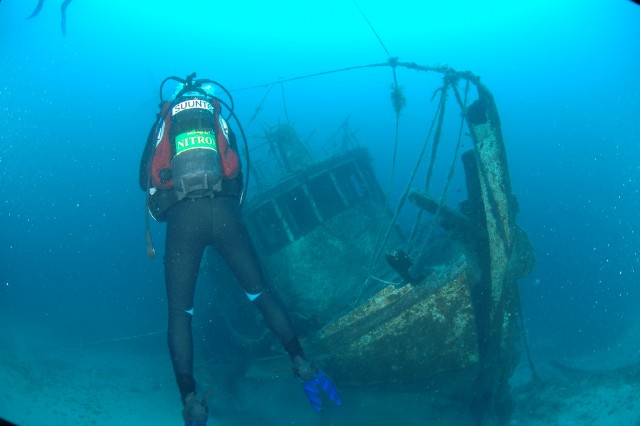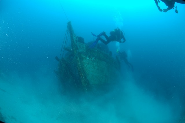 A fotón legyen egy eredetileg nem víz alá tervezett tárgy, pl. egy roncs (tengeralattjáró belefér, ha roncs), de akár horgony vagy egy neufeldi szobor vagy dorogi telefonfülke is belefér, és egy élőlény, ami szintén nem a víz alatt él (elég valószínű, hogy ez egy búvár lesz, de végülis egy víz alá merülő sirály is lehet). Megnézem a(z) Élő és élettelen látogatók albumot. | |