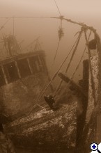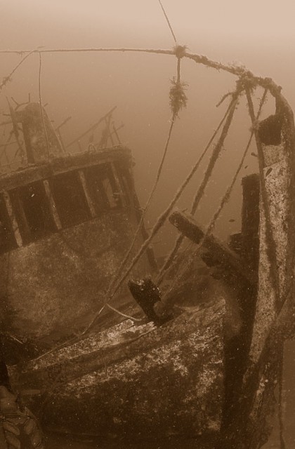 "Eccerű kompakt" Egy nagy darab egy szép roncsból. Nyilván rosszak voltak a kép szinei, a felszíni fények itt-ott megégették a hajót, a búvár uszonyát, palackját, a levegőoszlopot. Fekete fehérben ez nem annyira látszik.Amire felhívnám az alkotó figyelmét, az a homogén háttér. :-) ...Szerintem vegyél egy mosogatógépet otthonra :-) | ||