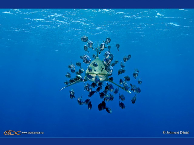Minden merüléshez kértem guide-ot, nagyon segítőkész volt a Blue Bay csapat, de túl sokan voltunk ahhoz, hogy ez sikerüljön. Így is menetközben szereltem fel és elsőként indulhattam, de mire felmértem a helyet, már késő volt. Hat merülésből kétszer teljesen külön vittek, három- ban olyan szintén vendég búvárral/Bogáti Csabi/ mehettem aki nem csak vezetett hanem a következő makro témát is kereste. A roncs volt a kivétel. Gondoltam én is az időkérésre, de nagyon meleg volt, nem mertem kérni. Egy jó kép biztosan megér egy tucat sört... | ||