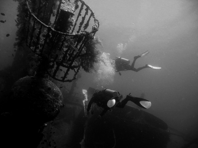 Á, szó sem volt nevezetes roncsról. Ez egy kis halászhajó, és a fotó nagyjából akkor készült, amikor a merülésvezető rájött, hogy a csoport egyik búvárjával lesznek kisebb-nagyobb problémák.:)