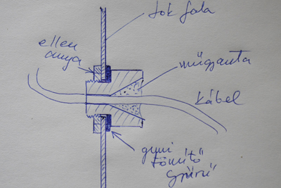 Igen, két komponensű műgyanta ragasztóra. Én egy régi, egyszerű megoldást emlitettem. Ha manapság kapható jó tömszelence és kábel, csináld inkább azzal.