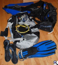![]() Semmi extra nincs benne, Cressi mellény, AquaLung reduktor, Mares uszonyok. Emellett egy 3 mm overall, csizma, maszk meg a láthatóan nem nehéz táska, nincs benne se görgő, se merevítés. Ha kicsit szervezkedek, le tudom vinni 10 kiló alá, de a 6,5 azért még odébb lenne. Pedig a mellényem kifejezetten könnyű... | ||