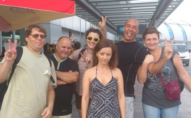 Ma elbucsuztattam egy kisebb csoportot a repteren, akik hatarozottan emlekeztettek a meghiusult szafari arcaira. Mindenki nagyon orult, hogy kimentem, megolelgettek, megpuszilgattak, es kellemes munkat kivantak holnapra. Ugye milyen kedvesek?