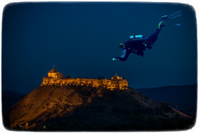 Nézd én itt lakom, párszor már nekem is megfordult ez viccesen a fejemben, a medence külső üveg falából a várat fotózni, elé egy búvár aranymetszésben. Én a magam részéről beruházok a nagylátos obiba portostól, a többi része meg nem rajtam múlik. :)