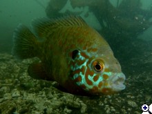 A szivárványsügerekkel régebben a tündérrózsák tövei között lehetett találkozni, ahogy az ivadékaikat terelgették. Most a tó 8-10 körbeúszása alatt egyetlen családot sem találtam. Annál inkább naphalakat. A 2m körüli vízben néhol méterenként volt a fenéken egy-egy megtisztított placc, amit gondosan őriztek és takarítottak a naphalak. Jobb híján megpróbáltam őket fotózni. Keményen megkínlódtam a felszerelés hiányával, az iszap nagyon könnyen felkavarodott, végülis a nyerő technika az lett, hogy félig kifújt levegővel lebegtem oda hozzájuk. Egy-egy fészeknél 15-20 alkalommal is oda kellett merülnöm mire elkezdték a gépet szokni (a gyalázatos látótáv miatt 10 centinél messzebbről nem volt érdemes próbálkozni). Végül az utolsó napon sikerült szivárványsügeret is találni, egyetlen családot. Tanultabb kollégákat kérdezném: ennyi naphal (legalább 50 ikrázóhelyet találtam) azt jelenti, hogy a többi kishalnak annyi a tóban, vagy ez csak afféle időszakos zsongás, aztán előmászik a többi hal is valahonnan? | ||