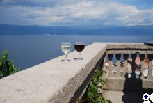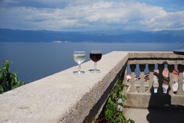 Nekünk se könnyű, háziasszonyunk saját véleménye szerint nem nagyon tudott a vacsorával foglalkozni, mert nem sokkal előttünk mentek el az előző vendégek, így csak "összeütött" valami egyszerűt. "Be kellett érni" előételnek friss fekete kagylós paradicsomos spagettivel, utána pedig egy fél méteres serpenyőnyi tintahalkarikával, friss salátával és azzal a vacak horvát kenyérrel, amiből úgy együltő helyben meg lehet enni egy veknivel, helyi borokkal vagy sörrel.