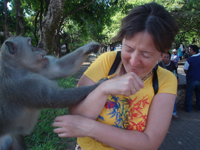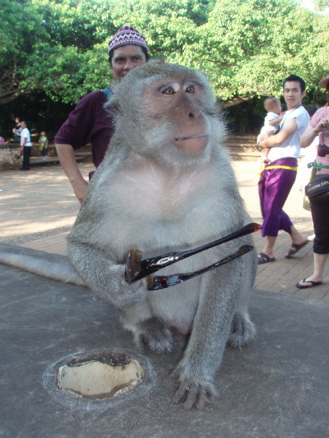 Persze a híres idegenvezetőtök nem hívta fel a figyelmeteket, hogy napszemüveg, hajgumi, sőt néha még a fülbevaló is eldugandó... szvsz megosztoztak a baksison a majommal.
