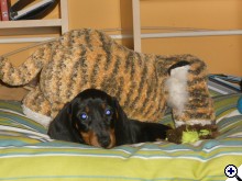 Olyan ez, mint amikor valakinek van egy nagy, családi autója és egy kétüléses cabrioja is. Mindkettőt másért szereti. Csak az ember ne lenne olyan hülye, h ha az egyik kutyának vesz valamit, akkor bűntudata van a másik miatt, és az is kap valamit...persze cserébe a Fressnapfban én lettem a hónap vásárlója.