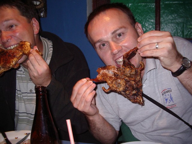 Vannak a világban humoros emberek. Azzal szórakoznak, hogy bebeszélik a túristának, hogy amit elé raknak az itt nemzeti eledel. A görögök megetetik vele mondjuk a tengeri sün "heréjét", a horvátok nyersen a srimpet, a mexikóiak mindenféle gyíkot , tücsköt , bogarat. A rászedett meg boldogan, önként... (bár gondolkodtam, hogy nyereg alatt szárított lóhússal én is kísérletezhetnék, de nem vitt rá a lélek)