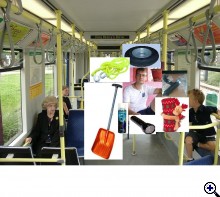 Láttam képet egy csajról, ugyanez a szöveg, és tényleg felszállt a 7-es buszra hóna alatt a felsorolt cuccokkal. OG-ék Ferihegyi békatalpazására' emlékeztetett.