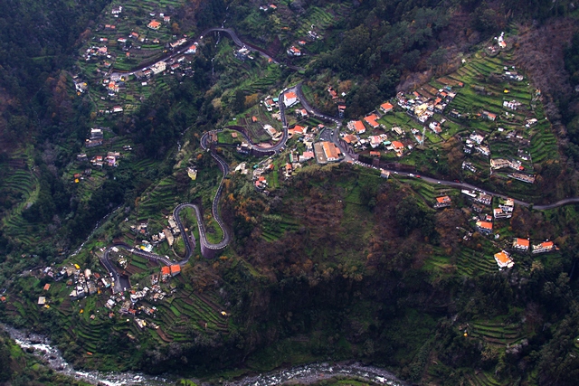 Igen, Madeira! Az eredeti kép egy 1053 méter magasan fekvő kilátóból készült, ahol gyakorlatilag függőleges fal van a korlát alatt, melynek a tövében terül el a képen is látható település...
