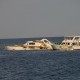 Egyiptomi mélydéli safari kép a St. John's szigeteknél. Egyik reggel erre a látványra ébredtünk. Az a nagyobb hajó éppen süllyed, aznap éjjel futott zátonyra. A búvárokat és a személyzetet már kimentették, a kis hajó éppen a motyót szedi ki belőle. Kicsit kivártunk a helyszínen, mert felmerült egy friss roncs merülés lehetősége :), de aztán letettünk róla, mert nagyon lassan süllyedt és alatta 35 méteren volt volt egy 20-30 méteres padka, kicsi volt az esélye, hogy éppen ott akad meg. Az összes többi esély ahova eshet az nagyon mély kék színű volt, úgyhogy passzoltuk a wreck dive-ot.