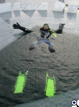 Gator nélkül én is küzdöttem, mint malac a jégen, de a kettő együtt nekem bevált. Aztán lehet persze, hogy nekem nincs akkora légtér a csizmámba, nekem a lábméretnek megfelelő csizma volt a ruhán. A mostani cuccom meg zokni+ cipős, hát itt ugye eleve nincs ez a gond, múltkor gator nélkül nyomtam, nem volt gond. Persze én nem tartok vissza senkit attól, hogy felrakjon 1-1 kilót a bokájára, nincs is jobb annál mondjuk egy áramlásban, vagy hosszabb úszásnál amikor egyébként is jól elfárad az ember, maximum megnő a fogyasztása rendesen. Engem minden esetre a hideg ráz ki a gondolattól, hogy a lábamra súlyokat aggassak. | ||