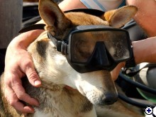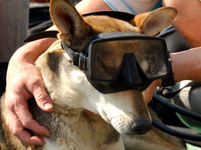 Szerintem a kérdés egyszerű. Az eb búvárkodott valaha? Ha igen, jöhet. Ám ha csak rá lett rakva a maszk, akkor nem búvár csupán egy blöki akire ráakasztottak egy maszkot.