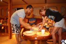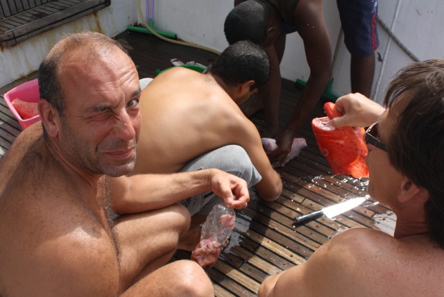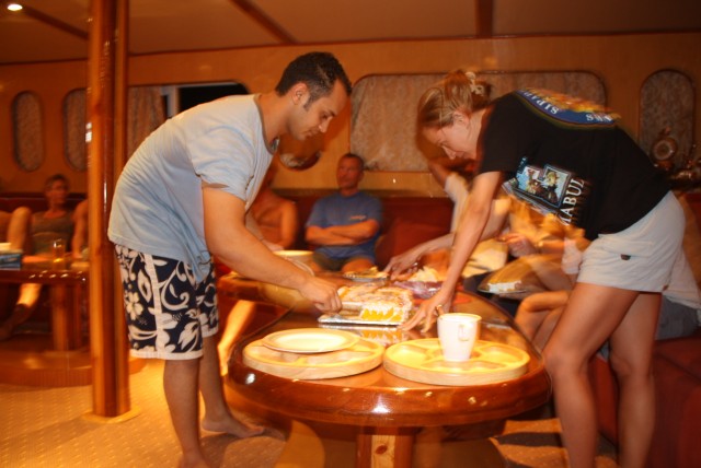 Egy picit szeles időnk volt, ami alapvetően befolyásolta a menetrendet. Konkrétan amit befejeztük a merülést már húzták is be a zodiacokat és gyors kaja után el kellett indulni felfele. Lementünk szinte a szudáni határig, így aztán söpörni kellett felfele plusz nagyon durva szelet igértek (ami jött is, csak épp nem okozott gondot, az Andromedán van pár változtatás és szerintem frankóbb lett a hullámtűrése).