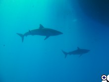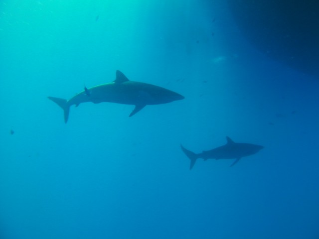 Egy kis helyzetjelentés az Elphinstone-ról, hogy feldobjam a hangulatot: ma valami csoda folytán csak mi merültünk itt három selyemcápa társaságában. Csak beugrottunk a hajó alá és fixíroztuk egymást majd egy órán keresztül... Sajna hideg a víz (26 C), ki kellett menni.
