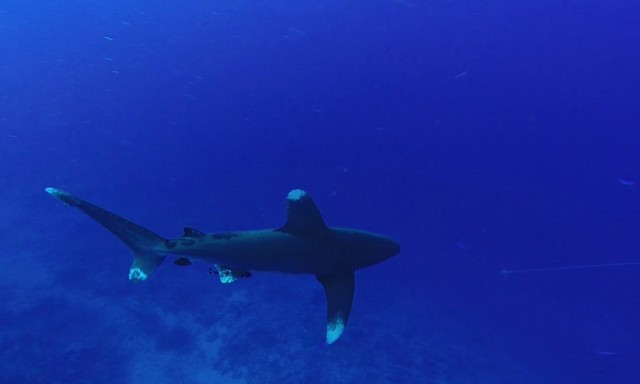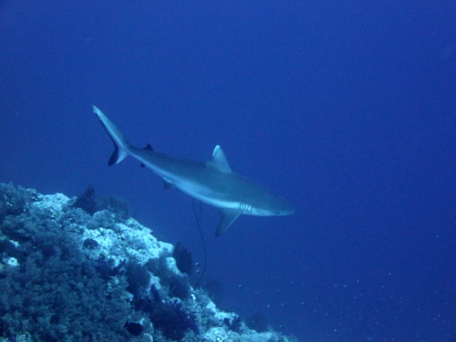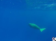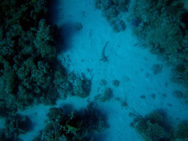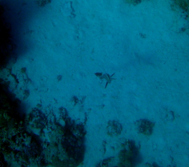 Volt szerencsém eltölteni néhány napot a vörösön és láttam sznorizás közben valamit amiről nem tudom mi. Tudnátok segíteni? Megpróbáltam lefotózni de kb 15 méteren volt és amikor lefotóztam elindult felém mivel nem volt levegőm az ilyen helyzetekre gyorsan felúsztam és vártam meddig fog jönni :) A kép nagyon gyenge lett de kivehető belőle szerintem hogy mi az ha valaki jártas benne. Én valamilyen macskacápára tippeltem. | ||