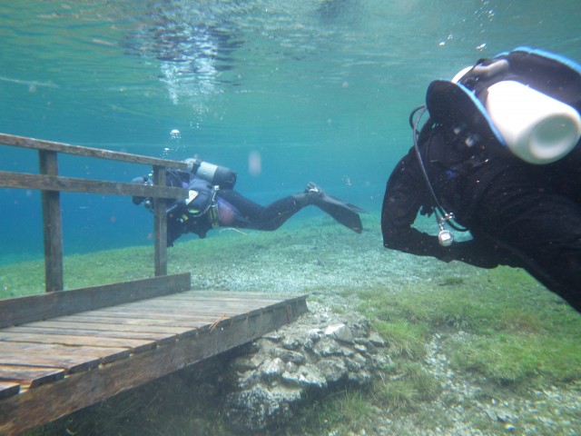Nekünk anno az ARGE Tauchen kártya azért kellett, mert a palackokat csak ezzel töltötték az Erlaufsee melletti bázison, de nem volt semmilyen ellenőrzés egyébként: megálltunk, volt ingyen parkoló, öltöző, egyszerűen csak mentünk merülni. De egyébként nem nagy összeg a kártya ára, egyszerűbb kiváltani, végülis van szolgáltatás is cserébe. Az Erlaufsee-ben inkább a sekély vízben maradnék. Az elején a trepnihez sokan lemennek még, de mélyre a hideg, kihalt vízbe teljesen felesleges elkalandozni. A maximum 4-5 méteres vízben a part közelében sok a vízinövény, ott él sok hal, nagy csukák is. | ||