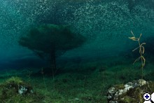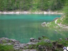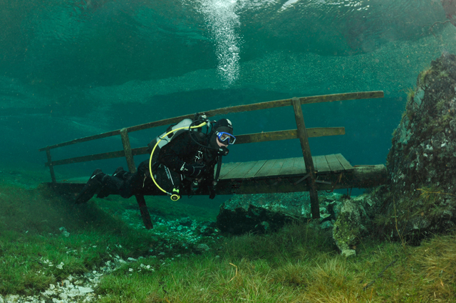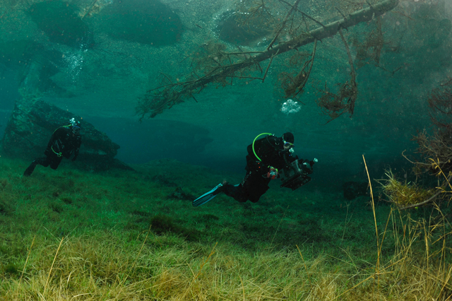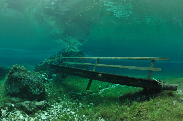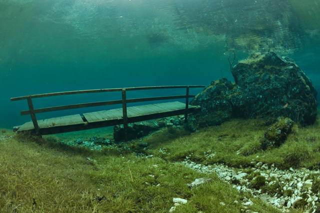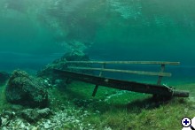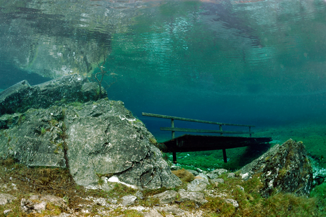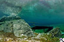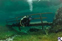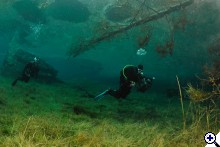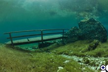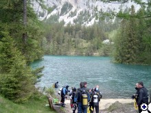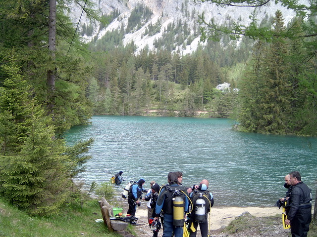 A faluban tábla jelzi, merre van a tó. Először egy nagy parkolóig ér az ember, ott van egy kis tájékoztató iroda, ott kell megvenni a napi belépőt (ami annak idején egyben parkolójegy is volt), de nem ott kell megállni, hanem a kis úton tovább kell menni egészen a fogadó parkolójáig. Ott van öltözőhelyiség is, de korán érdemes érkezni, mert az osztrák búvárok gyorsan elfoglalják a tóhoz közelebbi parkolókat. A vízbe aztán csak be kell sétálni. Navigáció? A látás szinte korlátlan, ha látsz valami érdekeset valamelyik irányba, akkor oda kell úszni. A víz tényleg hideg, tehát ha kicsit is fázni kezd az ember, azonnal érdemes visszafordulni. Ha már jön a reszketés, és akkor fordul a búvár, van egy nagyon kellemetlen hosszú úszása a partig. Akkor már jobb két rövidet, 30-40 perceset merülni. Palackot azt hiszem a fogadónál tudnak tölteni, de ez nem igazi búvárbázis, tehát bérlésre meg hasonlóra nem érdemes számítani. Enni, inni viszont itt is lehet. | ||