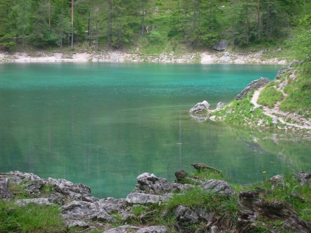 Ilyen víz felszínén lebegő anyagra én is emlékszem. 1-2 nagyon erős zivatar után mentünk ki, és úgy tippeltem, a zuhé vitte a vízbe. De bármi is volt az ok, nem volt az az igazi szép Grüner See-élmény. Max. 85%-os.:)