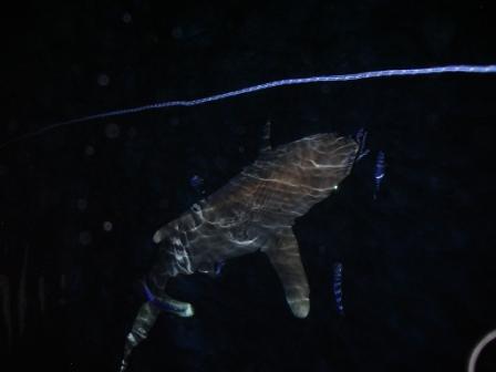 Na ez az, amit szoktam mondogatni: a fotózás a pillanat megragadásának művészete. Ez az a baráti mosoly, ami felállítja a szőrt is a hátamon. :-) Hát még. hogy a cápa a szemembe is néz! Nagyon tetszik a kép. Próbáljátok csak ezeket a vigyorgókat rávenni, hogy kicsit zárja össze az uszonyát, meg a lámpát a kezében fordítsa jobbra 30 fokkal DDD | ||