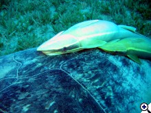 500 tekercsből 50 kép, az nem olyan rossz arány, szerintem... :) Volt itt egy rutinos fotós, aki azt mondta, hogy ha rossz pozícióban van az amúgy igéretes témaalany, akkor ott kell hagyni... :) Osztom a véleményét! Ez a cápa színtből és alsó perspektívából is egész jól mutatna... A nevezett fotó arra jó, hogy jól lássuk ezt az érdekes cápafajt, de maga a fotó nem annyira érdekes. | ||