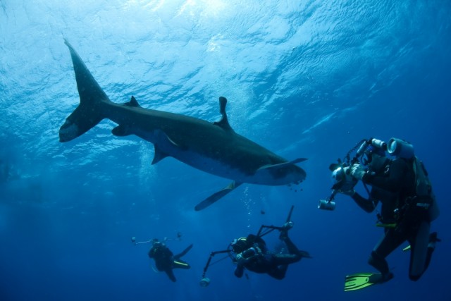 Az alapvetően jó dolog, egy szép nagy fényképező tok pont jó arra, hogy magad és a cápa közé rakd, a vakukar meg arra, hogy jól orrbavágd vele. Szóval a fotós biztonságban van :)