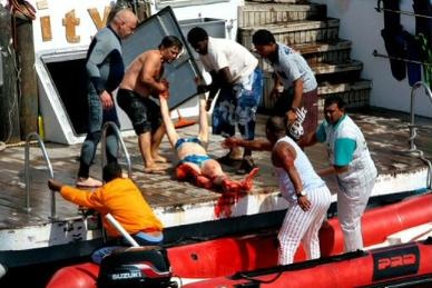 Tegnap jôttem haza déli szafariról, st, Johnsra nem engettek be minket a támadás miatt... de meg tudom erôsítteni, hogy a fehérfoltú óceáni cápák idén nagyon agresszív viselkedést mutattnak.(volt szerencsém úszkalni veluk a kôzeli térségben) és bizoníttásként itt egy kép amit ott készítettek a támadás után!!! | ||