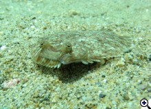 Olyan élőlényekről várunk víz alatti képet, amelyek az aljzathoz (homokos, sziklás vagy kavicsos) lapulva vagy homokba bújva rejtőzködnek, pl. lepényhal, rája. Képeket értékeli: Kiss Gábor Megnézem a(z) A homok titkai albumot. | |